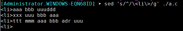 sed 's/^/\<li\>/g' ./a.c | tee b.c