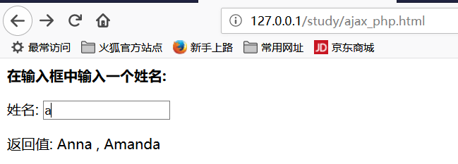 xxxxxxxxxx<?php// 将姓名填充到数组中$a[]="Anna";$a[]="Brittany";$a[]="Cinderella";$a[]="Diana";$a[]="Eva";$a[]="Fiona";$a[]="Gunda";$a[]="Hege";$a[]="Inga";$a[]="Johanna";$a[]="Kitty";$a[]="Linda";$a[]="Nina";$a[]="Ophelia";$a[]="Petunia";$a[]="Amanda";$a[]="Raquel";$a[]="Cindy";$a[]="Doris";$a[]="Eve";$a[]="Evita";$a[]="Sunniva";$a[]="Tove";$a[]="Unni";$a[]="Violet";$a[]="Liza";$a[]="Elizabeth";$a[]="Ellen";$a[]="Wenche";$a[]="Vicky";//从请求URL地址中获取 q 参数$q=$_GET["q"];//查找是否由匹配值, 如果 q>0if (strlen($q) > 0){ $hint=""; for($i=0; $i<count($a); $i++) { if (strtolower($q)==strtolower(substr($a[$i],0,strlen($q)))) { if ($hint=="") { $hint=$a[$i]; } else { $hint=$hint." , ".$a[$i]; } } }}// 如果没有匹配值设置输出为 "no suggestion" if ($hint == ""){ $response="no suggestion";}else{ $response=$hint;}//输出返回值echo $response;?>实际效果: