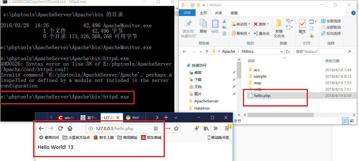 xxxxxxxxxx在 E:\phptools\ApacheServer\Apache\htdocs 目录下,建立一个 index.php ,内容如下:<!DOCTYPE html><html> <body> <?php echo "Hello World!<br/>"; echo strlen("Hello world!\n"); ?> </body></html>