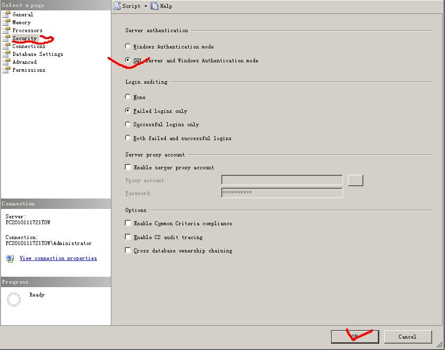 sqlserver 2008 windows 认证改为 sql server 认证一、二、