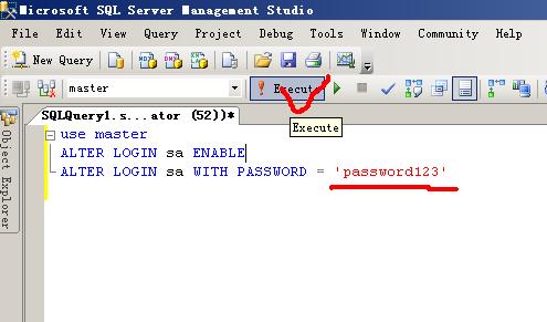 xxxxxxxxxx已修改成功,这时重新打开SQL server,将需要输入密码。这时若不是本地登录时,必须使用password.